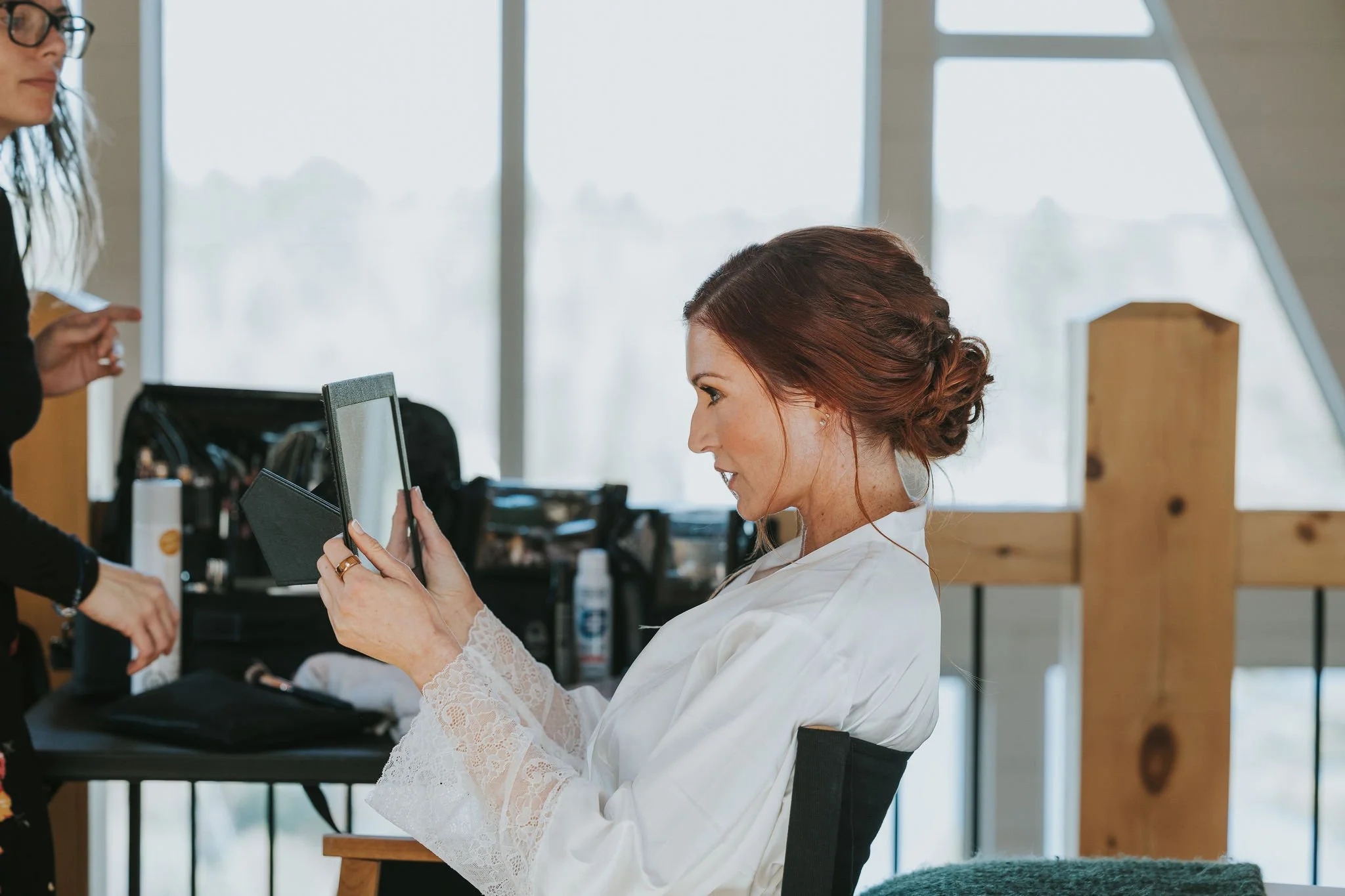 They chose an incredible A-frame Airbnb perched high above the waterfront, a luxurious wood-beam cottage that offered the perfect setting for their vows. This cozy yet elegant space allowed them to truly connect with each other and the stunning natural surroundings.